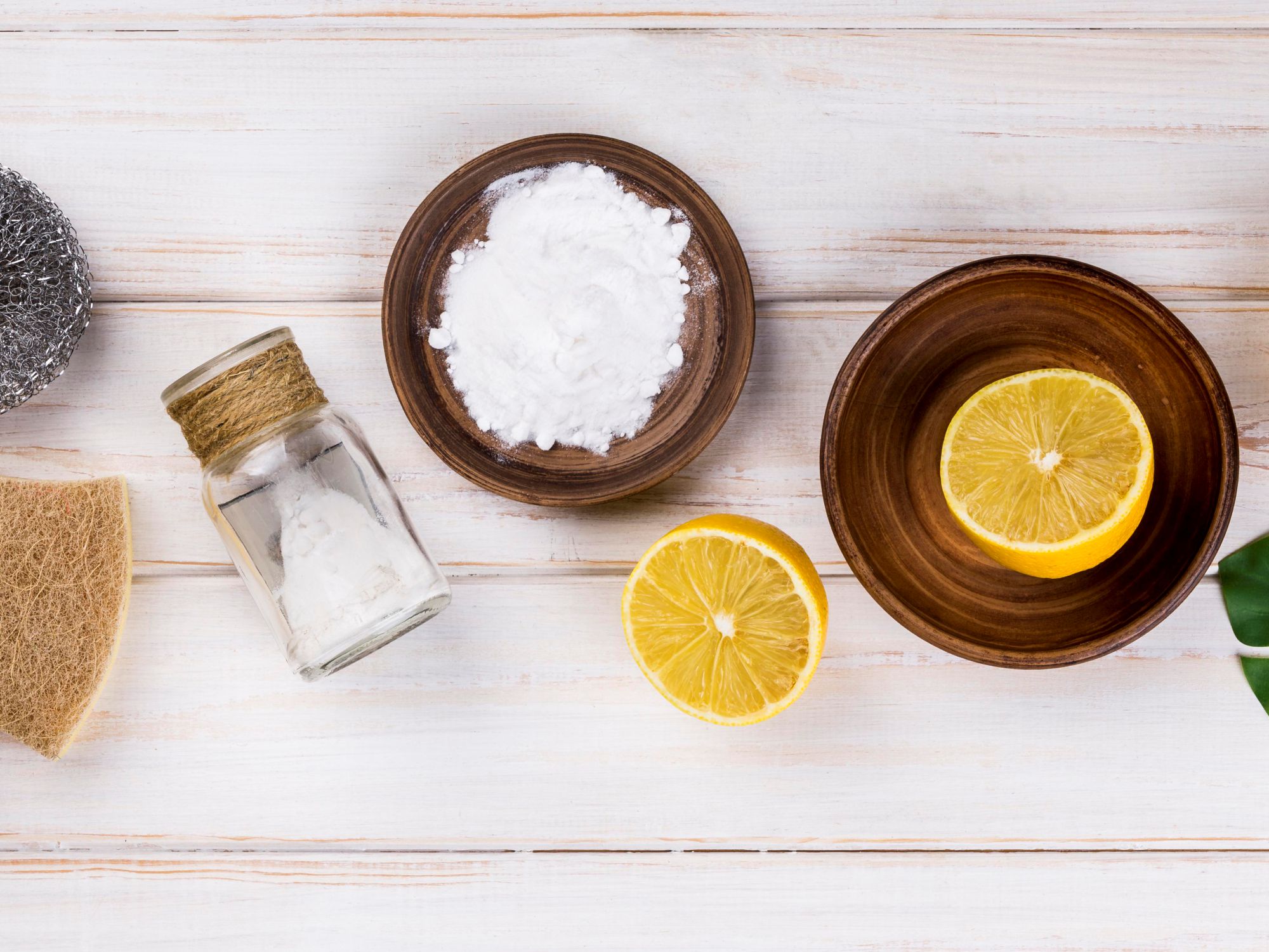 Take a half lemon and a teaspoon of baking soda in a cup to create a thick paste like solution.